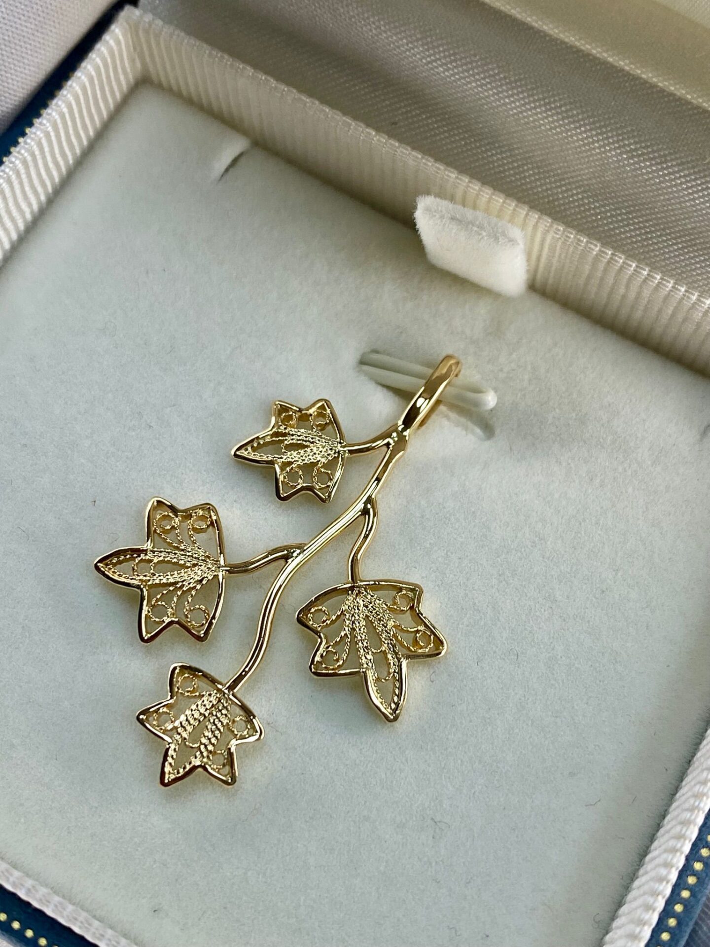 Réalisée avec une précision absolue, elle associe le filigrane délicat à l’éclat du métal précieux. Le Christ en or, sculpté avec une attention infinie aux détails, semble suspendu dans une lumière intemporelle. Ses bras s’étendent, épousant la géométrie sacrée de la croix, tandis que de somptueuses arabesques s’entrelacent dans un jeu de textures et de contrastes.
